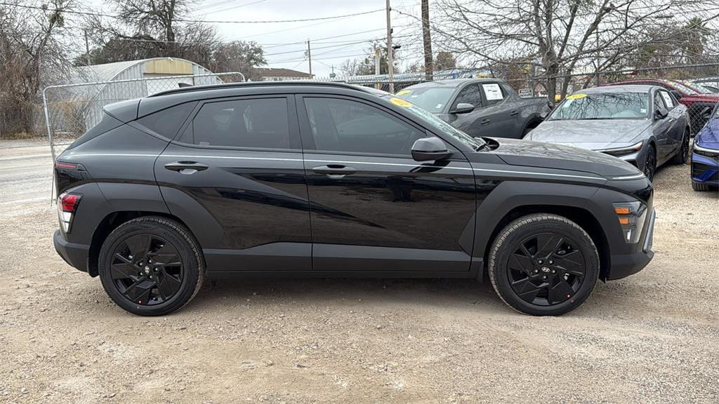 This 2026 Hyundai Kona SEL Sport in Abyss Black Pearl comes with the following features: 2.0L I4 DOHC 16V CVT FWD Option Group 01, 4-Wheel Disc Brakes, 6 Speakers, ABS brakes, Air Conditioning, Alloy wheels, AM/FM radio: SiriusXM, Apple CarPlay & Android Auto, Auto High-beam Headlights, Automatic temperature control, Brake assist, Bumpers: body-color, Cargo Net, Cargo Tray, Carpeted Floor Mats, Cloth Seat Trim, Delay-off headlights, Driver door bin, Driver vanity mirror, Dual front impact airbags, Dual front side impact airbags, Electronic Stability Control, Emergency communication system: None, Exterior Parking Camera Rear, First Aid Kit, Front anti-roll bar, Front Bucket Seats, Front Center Armrest, Front dual zone A/C, Front reading lights, Front wheel independent suspension, Fully automatic headlights, Heated door mirrors, Heated Front Bucket Seats, Heated front seats, Illuminated entry, Leather steering wheel, Low tire pressure warning, Mud Guards, Occupant sensing airbag, Outside temperature display, Overhead airbag, Panic alarm, Passenger door bin, Passenger vanity mirror, Power door mirrors, Power steering, Power windows, Radio: AM/FM/SiriusXM/HD Audio System, Rear seat center armrest, Rear window defroster, Rear window wiper, Remote keyless entry, Security system, Severe Weather Kit, Speed control, Speed-sensing steering, Split folding rear seat, Spoiler, Steering wheel mounted audio controls, Tachometer, Telescoping steering wheel, Tilt steering wheel, Traction control, Trip computer, Variably intermittent wipers, and Wheels: 18" x 7.0J Black Alloy. Price includes: $1000 - Hyundai HMF Dealer Choice : $1000 discount and 5.39% APR for 24 months. $44.05 per $1000 financed. Available to well qualified buyers who finance through Hyundai Motor Finance. H704. Exp. 03/02/2026