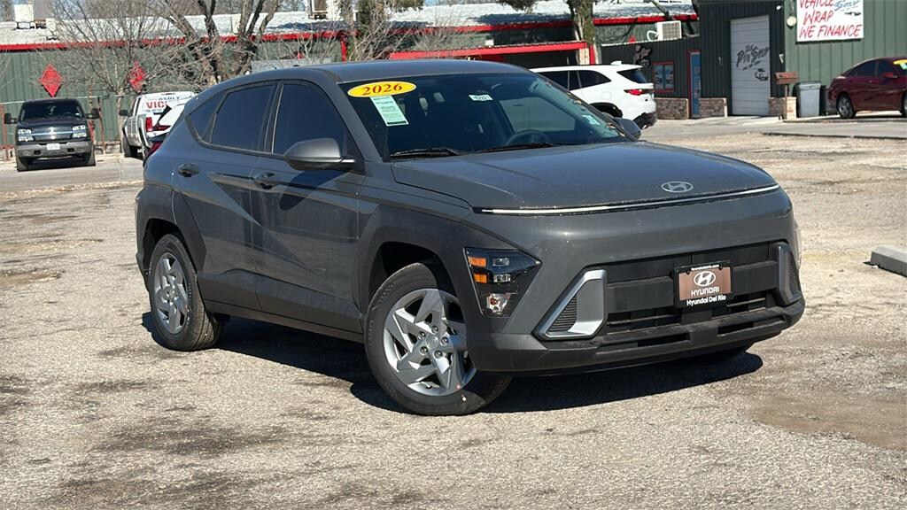 This 2026 Hyundai Kona SE in Ecotronic Gray Pearl comes with the following features: 2.0L I4 DOHC 16V CVT FWD Option Group 01, 4-Wheel Disc Brakes, 6 Speakers, ABS brakes, Air Conditioning, Alloy wheels, AM/FM radio: SiriusXM, Apple CarPlay & Android Auto, Auto High-beam Headlights, Brake assist, Bumpers: body-color, Cargo Tray, Carpeted Floor Mats, Cloth Seat Trim, Delay-off headlights, Driver door bin, Driver vanity mirror, Dual front impact airbags, Dual front side impact airbags, Electronic Stability Control, Emergency communication system: None, Exterior Parking Camera Rear, Front anti-roll bar, Front Bucket Seats, Front Center Armrest, Front reading lights, Front wheel independent suspension, Fully automatic headlights, Illuminated entry, Low tire pressure warning, Mud Guards, Occupant sensing airbag, Outside temperature display, Overhead airbag, Panic alarm, Passenger door bin, Passenger vanity mirror, Power door mirrors, Power steering, Power windows, Radio: AM/FM/SiriusXM/HD Audio System, Rear window defroster, Rear window wiper, Remote keyless entry, Security system, Speed control, Speed-sensing steering, Split folding rear seat, Spoiler, Steering wheel mounted audio controls, Tachometer, Telescoping steering wheel, Tilt steering wheel, Traction control, Trip computer, Variably intermittent wipers, and Wheels: 17" x 7.0J Steel Gray Alloy. Price includes: $750 - Hyundai HMF Dealer Choice : $750 discount and 5.39% APR for 24 months. $44.05 per $1000 financed. Available to well qualified buyers who finance through Hyundai Motor Finance. H704. Exp. 02/02/2026