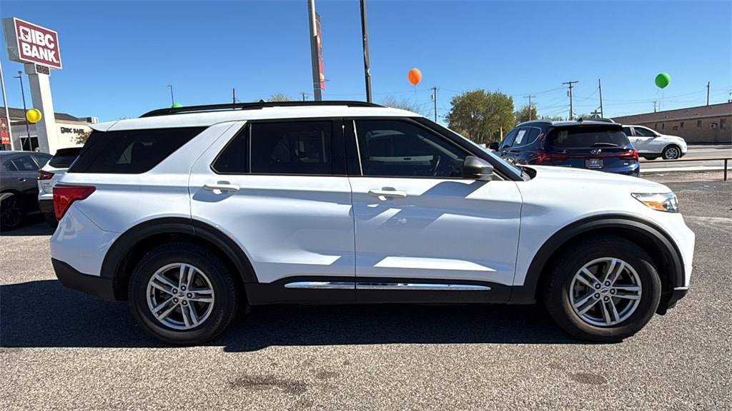 This 2023 Ford Explorer XLT in Oxford White comes with the following features: 2.3L EcoBoost I-4 10-Speed Automatic RWD Equipment Group 202A (Heated ActiveX Captain's Chairs, Heated Steering Wheel, LED Fog Lamps, Remote Start System, and SecuriCode Keyless Entry Keypad), 2nd Row 35/30/35 Bench w/E-Z Entry & Armrest, 3.58 Non-Limited-Slip Rear Axle Ratio, 3rd row seats: bench, 4-Wheel Disc Brakes, 4G LTE Wi-Fi Hotspot Credit, 6 Speakers, ABS brakes, Air Conditioning, Alloy wheels, AM/FM radio: SiriusXM, AM/FM Stereo, Auto High-beam Headlights, Auto Start-Stop Removal (DISC), Automatic temperature control, Brake assist, Bumpers: body-color, Compass, Delay-off headlights, Driver door bin, Driver vanity mirror, Dual front impact airbags, Dual front side impact airbags, Electronic Stability Control, Emergency communication system: SYNC 3 911 Assist, Exterior Parking Camera Rear, FordPass Connect, Four wheel independent suspension, Front anti-roll bar, Front Bucket Seats, Front Center Armrest, Front dual zone A/C, Front License Plate Bracket, Front reading lights, Fully automatic headlights, Heated door mirrors, Heated front seats, Heated Unique Cloth Captain's Chairs, Illuminated entry, Knee airbag, Leather steering wheel, Low tire pressure warning, Occupant sensing airbag, Outside temperature display, Overhead airbag, Overhead console, Panic alarm, Passenger door bin, Passenger vanity mirror, Power door mirrors, Power driver seat, Power Liftgate, Power passenger seat, Power steering, Power windows, Rear air conditioning, Rear anti-roll bar, Rear Auxiliary Controls Credit, Rear reading lights, Rear window defroster, Rear window wiper, Remote keyless entry, Roof rack: rails only, Security system, Speed control, Speed-sensing steering, Speed-Sensitive Wipers, Split folding rear seat, Spoiler, Steering wheel mounted audio controls, SYNC 3 Communications & Entertainment System, SYNC 3/Apple CarPlay/Android Auto, Tachometer, Telescoping steering wheel, Tilt steering wheel, Traction control, Trip computer, Variably intermittent wipers, and Wheels: 18" 5-Spoke Silver-Painted Aluminum.
