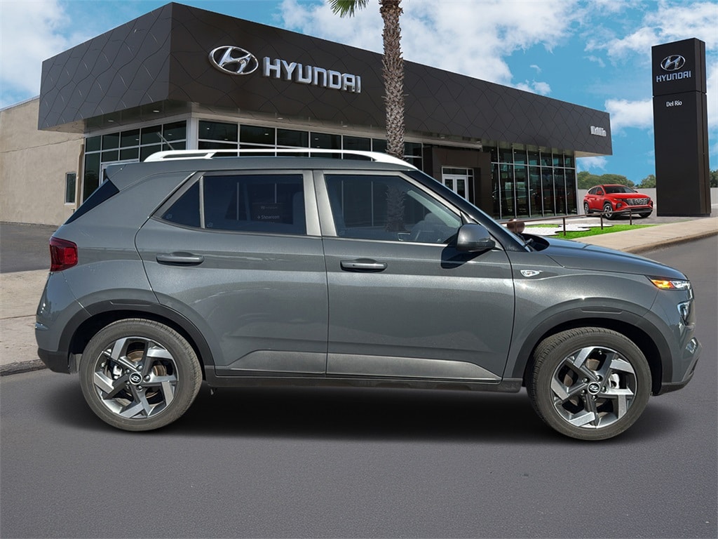 This 2024 Hyundai Venue SEL in Ecotronic Gray comes with the following features: I4 CVT FWD Option Group 01, AM/FM radio, Automatic temperature control, Cargo Net, Dual front impact airbags, Electronic Stability Control, Front Bucket Seats, Front wheel independent suspension, Fully automatic headlights, Illuminated entry, Leather steering wheel, Occupant sensing airbag, Panic alarm, Passenger vanity mirror, Power moonroof, Power steering, Rear Bumper Applique, Rear window wiper, Steering wheel mounted audio controls, Tachometer, Telescoping steering wheel, 4-Wheel Disc Brakes, 6 Speakers, 6.052 Axle Ratio, 6.5J x 17" Alloy Wheels, ABS brakes, Air Conditioning, All-Weather Floor Mats, Alloy wheels, Apple CarPlay & Android Auto, Auto High-beam Headlights, Brake assist, Bumpers: body-color, Cargo Tray, Cloth Seat Trim, Delay-off headlights, Driver door bin, Driver vanity mirror, Dual front side impact airbags, First Aid Kit, Front anti-roll bar, Front Center Armrest, Front reading lights, Leather Shift Knob, Low tire pressure warning, Outside temperature display, Overhead airbag, Overhead console, Passenger door bin, Power door mirrors, Power windows, Radio: AM/FM/HD Display Audio, Rear Seat Cup Holder, Rear window defroster, Remote keyless entry, Roof rack: rails only, Security system, Speed control, Speed-sensing steering, Split folding rear seat, Spoiler, Tilt steering wheel, Traction control, Trip computer, and Variably intermittent wipers.