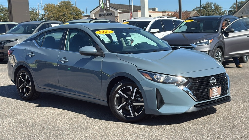 This 2024 Nissan Sentra SV in Atlantic Gray Metallic comes with the following features: 2.0L I4 DOHC CVT with Xtronic FWD CVT with Xtronic, Charcoal Cloth, 16" Alloy Wheels, 4-Wheel Disc Brakes, 6 Speakers, ABS brakes, Air Conditioning, Alloy wheels, AM/FM radio: SiriusXM, Auto High-beam Headlights, Blind Spot Warning, Brake assist, Bumpers: body-color, Carpeted Floor Mats w/Trunk Mat, Delay-off headlights, Driver door bin, Driver vanity mirror, Dual front impact airbags, Dual front side impact airbags, Electronic Stability Control, Four wheel independent suspension, Front anti-roll bar, Front Bucket Seats, Front Center Armrest, Front reading lights, Fully automatic headlights, Illuminated entry, Knee airbag, Leather steering wheel, Low tire pressure warning, NissanConnect featuring Apple CarPlay and Android Auto, Occupant sensing airbag, Outside temperature display, Overhead airbag, Overhead console, Panic alarm, Passenger door bin, Passenger vanity mirror, Power door mirrors, Power steering, Power windows, Radio data system, Radio: AM/FM w/RDS/MP3/Aux-In, Rear anti-roll bar, Rear Parking Sensors, Rear side impact airbag, Rear window defroster, Remote keyless entry, Security system, Speed control, Speed-sensing steering, Split folding rear seat, Steering wheel mounted audio controls, Tachometer, Technical Spec Change 1 (DISC), Telescoping steering wheel, Tilt steering wheel, Traction control, Trip computer, Upgraded Cloth Seat Trim, and Variably intermittent wipers.