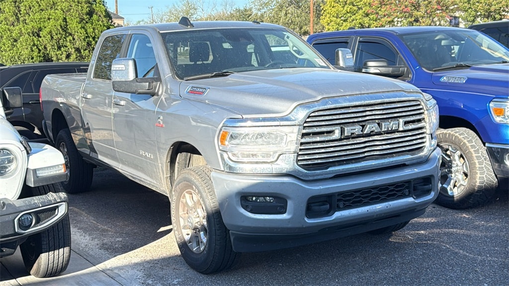 This 2024 Ram 2500 Laramie in Billet Silver Metallic Clearcoat comes with the following features: Cummins 6.7L I6 Turbodiesel 6-Speed Automatic 4WD Laramie Level 1 Equipment Group (12" Touchscreen Display, 2nd Row In Floor Storage Bins, 4G LTE Wi-Fi Hot Spot, Alexa Built-In, Apple CarPlay, Auto Adjust In Reverse Exterior Mirrors, Auto Dim Exterior Mirror, Auto High Beam Headlamp Control, Auto Power-Folding Mirrors, Auto-Dimming Exterior Passenger Mirror, Blind Spot & Cross Path Detection, Center Hub, Chrome Exterior Mirrors, Connected Travel & Traffic Services, Connectivity - US/Canada, Disassociated Touchscreen Display, Exterior Mirrors Courtesy Lamps, Exterior Mirrors w/Heating Element, Exterior Mirrors w/Memory, Exterior Mirrors w/Supplemental Signals, Foam Bottle Insert (Door Trim Panel), For Details, Visit DriveUconnect.com, For More Info, Call 800-643-2112, Forward & Reverse Utility Lights, Front LED Fog Lamps, Global Telematics Box Module (TBM), Google Android Auto, GPS Antenna Input, GPS Navigation, HD Radio, Integrated Voice Command w/Bluetooth, LED Reflector Headlamps, LED Tail Lamps, Mirror Running Lights, Off-Road Information Pages, ParkSense Front/Rear Park Assist System, Power Adjust Mirrors, Power Adjustable Convex Aux Mirrors, Power Adjustable Pedals w/Memory, Power Heated Fold Telescopic Mirrors w/Memory, Power Telescoping Mirrors, Radio: Uconnect 5 Nav w/12.0" Display, Rain Sensitive Windshield Wipers, Rear Power Sliding Window, Rear Window Defroster, Remote Tailgate Release, Selectable Tire Fill Alert, SiriusXM Radio Service, SiriusXM w/360L, Trailer Tow Pages, and Wheels: 18" x 8.0" Polished Aluminum), Quick Order Package 2HH Laramie, Safety Group (Adaptive Cruise Control w/Stop, Adaptive Steering System, Full Speed Forward Collision Warning Plus, and Lane Keep Assist), 10 Speakers, 115V Auxiliary Rear Power Outlet, 2 Way Rear Headrest Seat, 220 Amp Alternator, 3.73 Axle Ratio, 4 Way Front Headrests, 4-Wheel Disc Brakes, ABS brakes, Active Noise Control System, Air Conditioning, Alloy wheels, AM/FM radio: SiriusXM with 360L, Apple CarPlay/Android Auto, Automatic temperature control, Brake assist, Bumpers: body-color, Compass, Delay-off headlights, Driver door bin, Driver vanity mirror, Dual front impact airbags, Dual front side impact airbags, Electronic Stability Control, Electronically Controlled Throttle, Front anti-roll bar, Front Center Armrest w/Storage, Front dual zone A/C, Front License Plate Bracket, Front reading lights, Front Seat Back Map Pockets, Fully automatic headlights, Garage door transmitter, Heated door mirrors, Heated Front Seats, Heated front seats, Heated Steering Wheel, Heated steering wheel, Illuminated entry, Leather steering wheel, Leather Trim 40/20/40 Bench Seat, Low tire pressure warning, Manufacturer's Statement of Origin, Navigation System, Occupant sensing airbag, Outside temperature display, Overhead airbag, Overhead console, Panic alarm, ParkView Rear Back-Up Camera, Passenger door bin, Passenger vanity mirror, Power 2-Way Driver Lumbar Adjust, Power 2-Way Passenger Lumbar Adjust, Power Adjust 8-Way Driver Seat, Power Adjust 8-Way Front Passenger Seat, Power door mirrors, Power driver seat, Power passenger seat, Power steering, Power windows, Radio data system, Rear 60/40 Folding Seat, Rear anti-roll bar, Rear reading lights, Rear seat center armrest, Rear step bumper, Rear window defroster, Remote keyless entry, Security system, Speed control, Split folding rear seat, Steering wheel mounted audio controls, Tachometer, Tilt steering wheel, Tip Start, Tow Hooks, Traction control, Trip
