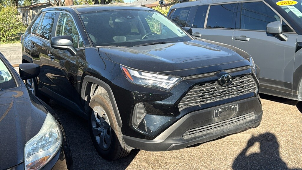 This 2025 Toyota RAV4 LE in Midnight Black Metallic comes with the following features: 2.5L 4-Cylinder DOHC Dual VVT-i 8-Speed Automatic FWD Black Cloth, 17" Steel Wheels, 4-Wheel Disc Brakes, 6 Speakers, ABS brakes, Air Conditioning, AM/FM radio: SiriusXM, Auto High-beam Headlights, Brake assist, Bumpers: body-color, Driver door bin, Driver vanity mirror, Dual front impact airbags, Dual front side impact airbags, Electronic Stability Control, Emergency communication system: Safety Connect (10-year trial), Exterior Parking Camera Rear, Fabric Seat Trim, Four wheel independent suspension, Front anti-roll bar, Front Bucket Seats, Front Center Armrest, Front reading lights, Illuminated entry, Knee airbag, Low tire pressure warning, Occupant sensing airbag, Outside temperature display, Overhead airbag, Overhead console, Panic alarm, Passenger door bin, Passenger vanity mirror, Power door mirrors, Power steering, Power windows, Radio data system, Radio: AM/FM/XM Audio System, Rear anti-roll bar, Rear seat center armrest, Rear window defroster, Rear window wiper, Remote keyless entry, Speed control, Speed-sensing steering, Split folding rear seat, Spoiler, Steering wheel mounted audio controls, Tachometer, Telescoping steering wheel, Tilt steering wheel, Traction control, and Trip computer.